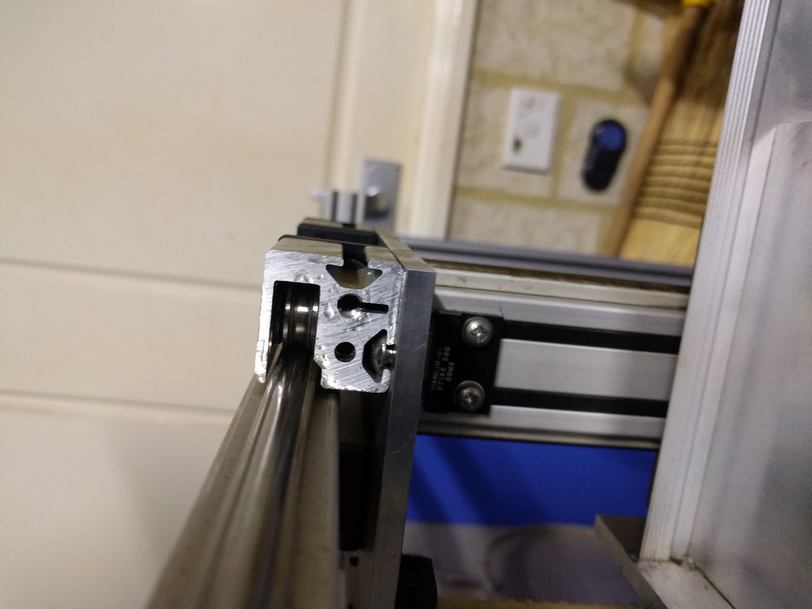 The Y axis on the chemical machine is supported by bearings both sides but only has a single side driven by a motor. That was fine when all it was doing was dropping a probe into some liquid but with a router the forces will be much higher. I will need to add a motor and belt to the non driven side.